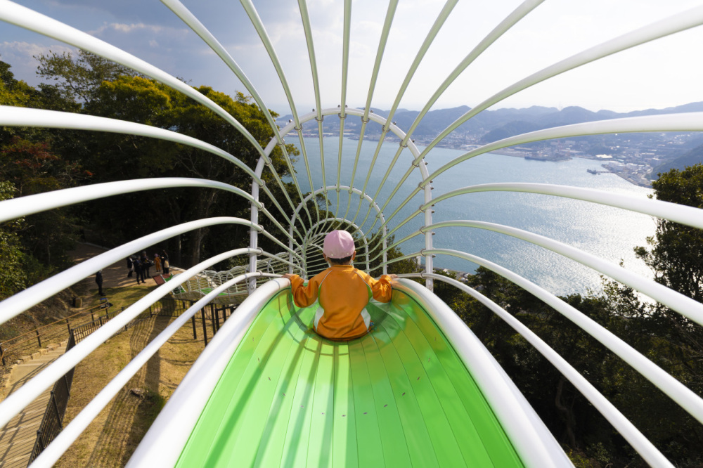 2025年11月には、山頂エリアに「火の山アスレチック」がオープン!関門海峡に向かって漕ぐ「空のブランコ」や迫力満点の滑り台、小さな子供も遊べるインクルーシブ遊具などが整備され、家族みんなで楽しむことができます。
