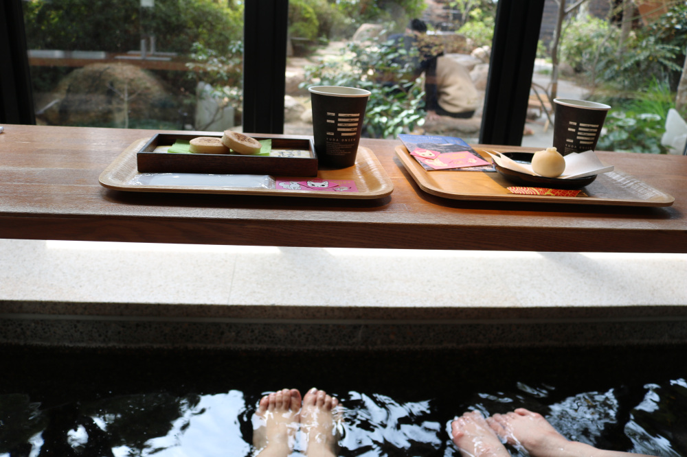 湯田温泉に来たらまずはここ、「狐の足あと」へ。3つの足湯につかりながら湯田温泉の情報を集めましょう。