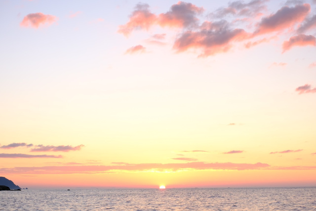 日本海にゆっくりと沈む夕陽を遊覧船からご覧いただけます。