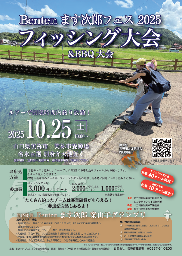 Bentenます次郎フェス2025 フィッシング大会&BBQ大会開催♪♪ 詳細・お申込みは、こちらをご確認ください。チラシデータ Loading... エリア 下関・秋吉台・宇部エリア 美祢市 カテゴリー 自然 川・滝・湖・渓谷 レジャースポット 体験 収穫体験 基本情報 住所 山口県美祢市 お問い合わせ 美祢市養鱒場 電話番号 0837-64-0203 ウェブサイト 詳細・申込