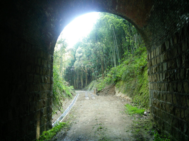 吉部小学校の裏手の小高い鉄道敷跡をしばらく歩いたところにある石積み+煉瓦アーチ造りの趣のあるトンネル。ノスタルジックでフォトジェニックな場所です。