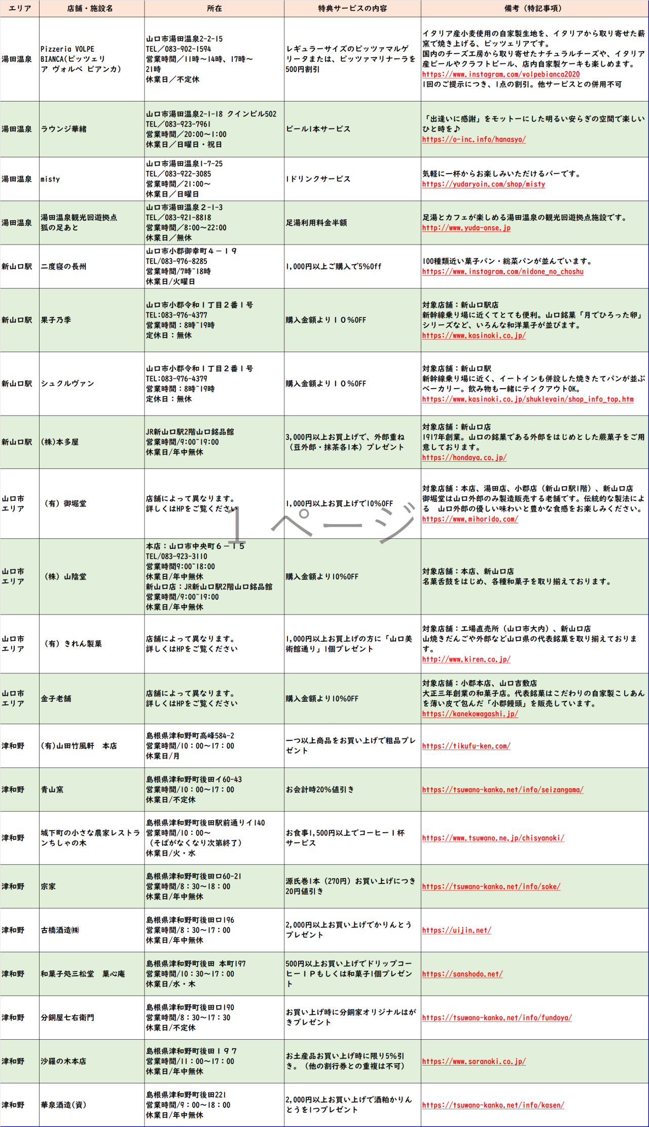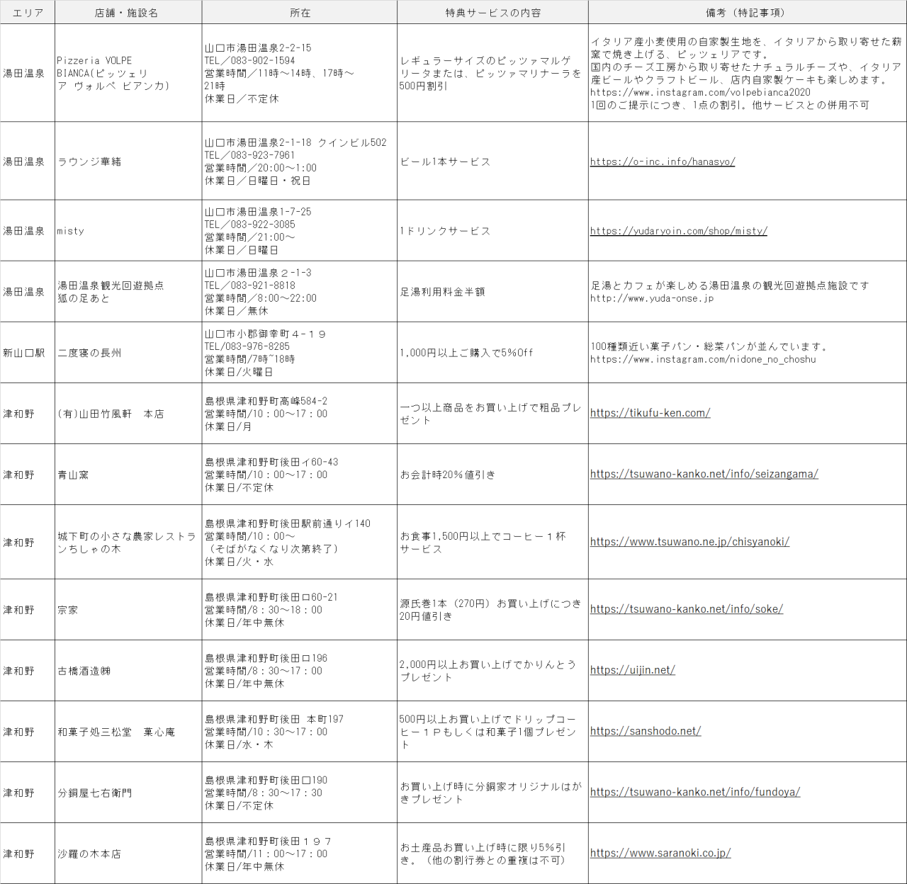 ● 「SLおもてなしクーポン」特典サービス提供店舗・施設(一覧)
